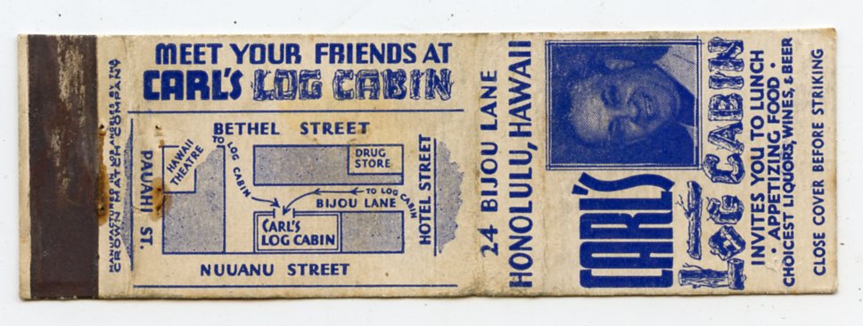 Carl's Log Cabin, Honolulu, HI [Matchbook Cover]