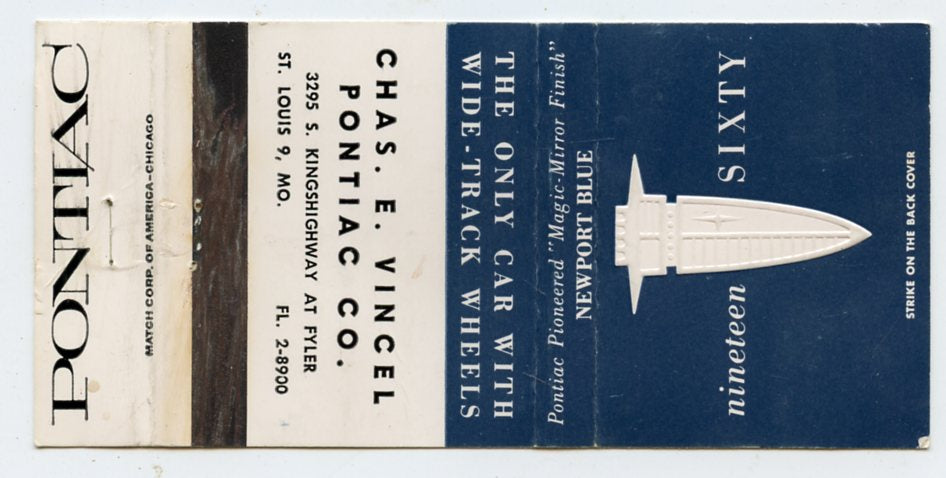Chas. E. Vincel Pontiac Co., St. Louis, MO Matchbook Cover
