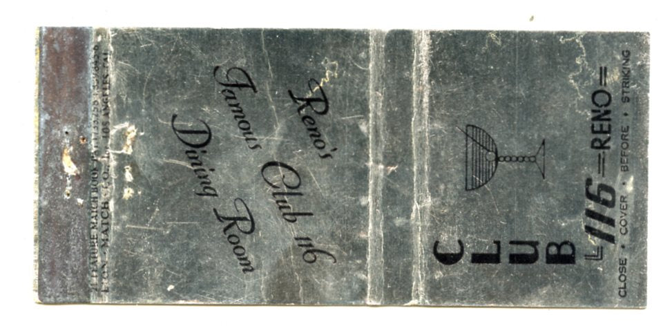 Club 116, Reno, NV Matchbook Cover