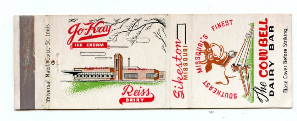 Cowbell Dairy Bar, Sikeston, MO Matchbook Cover