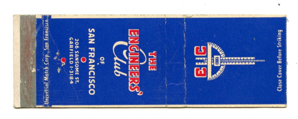 Engineers' Club of San Francisco, CA Matchbook Cover