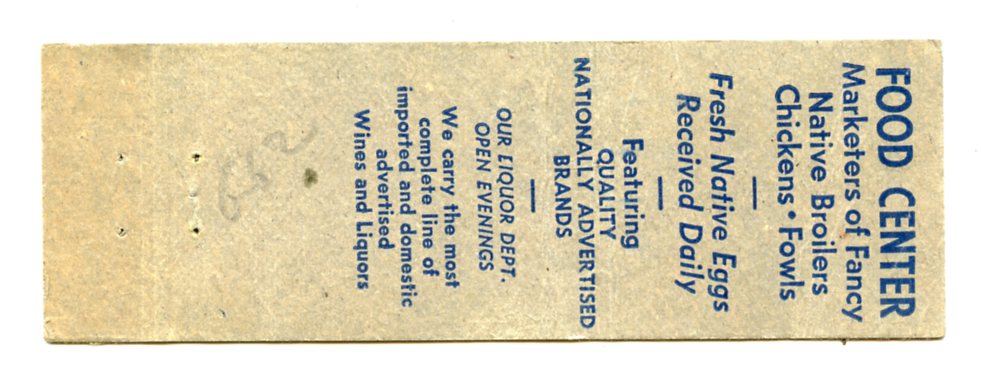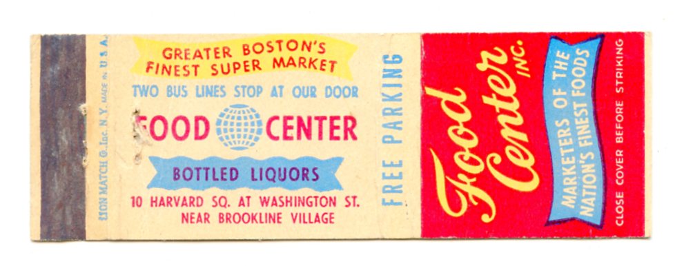 Food Center, Bottled Liquors, Brookline, MA [Matchbook Cover]
