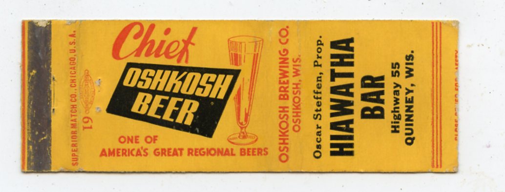 Hiawatha Bar/Oshkosh Beer, Quinney, WI [Matchbook Cover]
