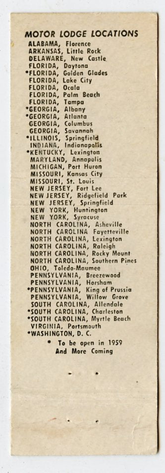 Howard Johnson's Motor Lodges and Restaurants Matchbook Cover