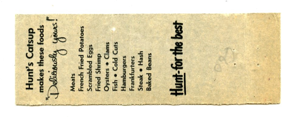 Hunt's Catsup, Deliciously Yours! [Matchbook Cover]