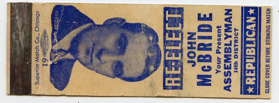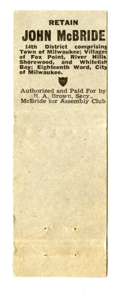John McBride for Assemblyman 14th District, Milwaukee, WI Matchbook Cover