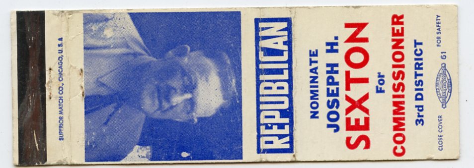 Joseph H. Sexton for Commissioner 3rd District Matchbook Cover
