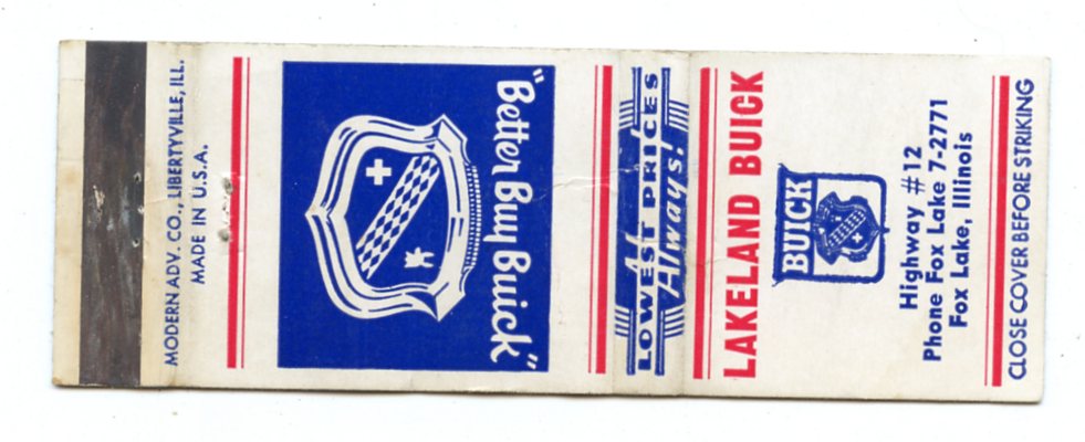 Lakeland Buick, Fox Lake, IL Matchbook Cover