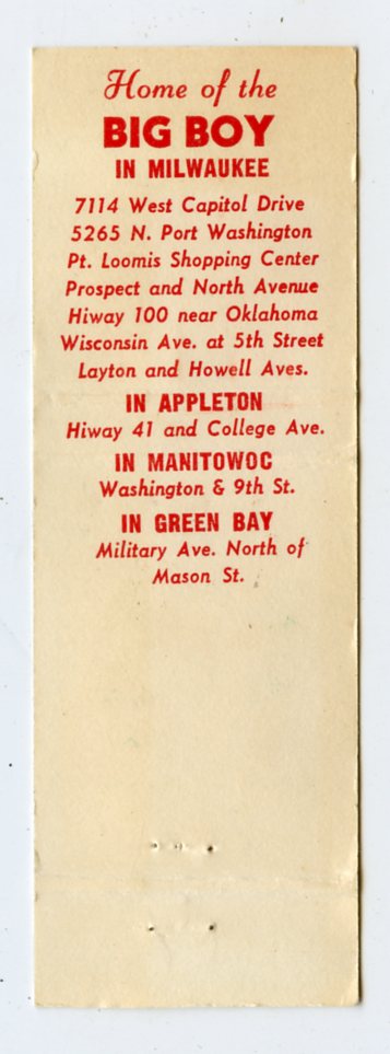 Marc's Big Boy, Appleton, Manitowoc, Milwaukee, Green Bay, WI [Matchbook Cover]