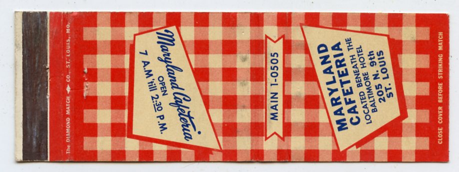 Maryland Cafeteria, St. Louis, MO Matchbook Cover