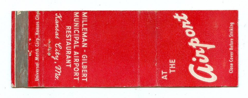 Milleman-Gilbert Municipal Airport Restaurant, Kansas City, MO Matchbook Cover