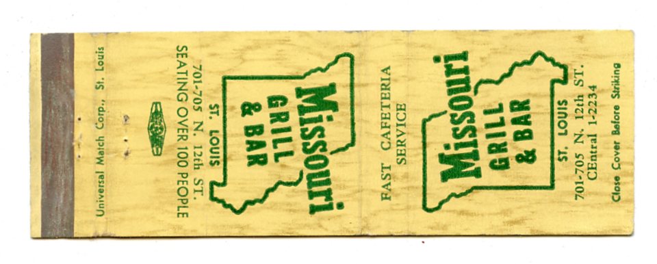 Missouri Grill & Bar, St. Louis, MO Matchbook Cover
