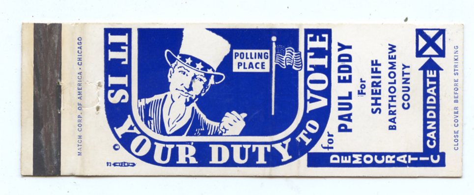 Paul Eddy for Sheriff Bartholomew County Matchbook Cover