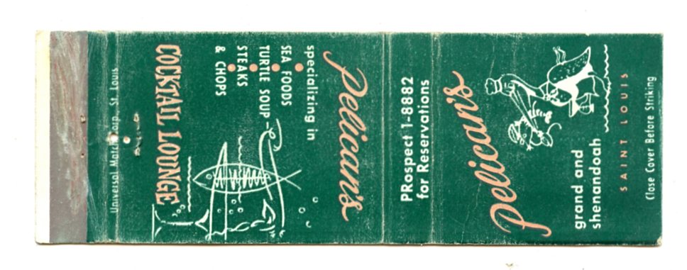 Pelican's Cocktail Lounge, St. Louis, MO Matchbook Cover
