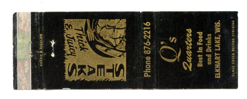 Q's Quarters, Elkhart Lake, WI [Matchbook Cover]