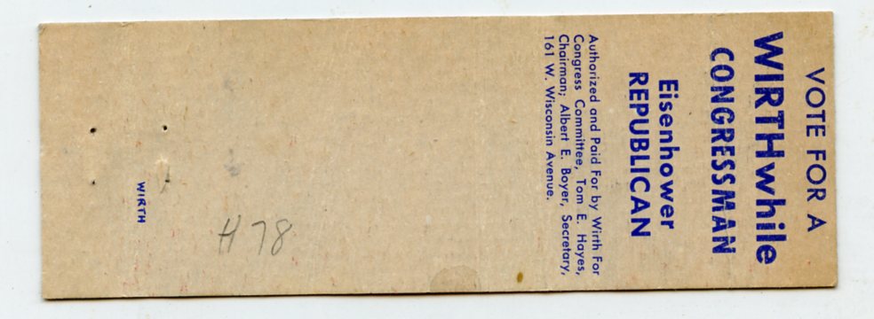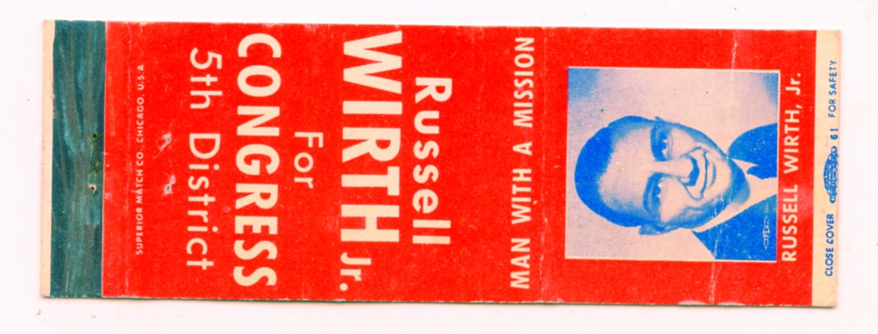 Russell Wirth Jr. for Congress 5th District, Milwaukee, WI [Matchbook Cover]