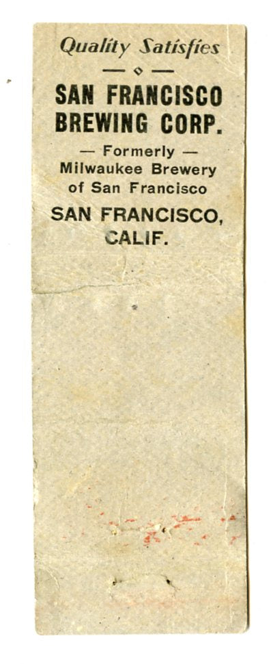 MATCHBOOK TITLE: San Francisco Brewing Corp., Formerly Milwaukee Brewery of San Francisco