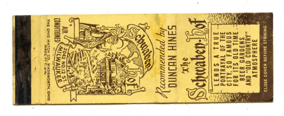 Schwabenhof Restaurant, Milwaukee, WI [Matchbook Cover]