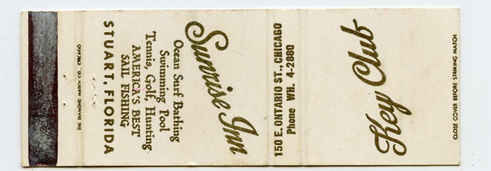 Sunrise Inn Key Club, Stuart, FL Matchbook Cover