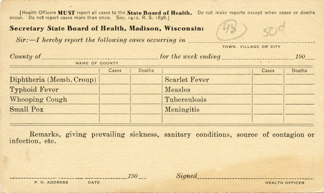 U. S. Postal Card, One Cent, Secretary State Board of Health, Madison, WI [Postcard]