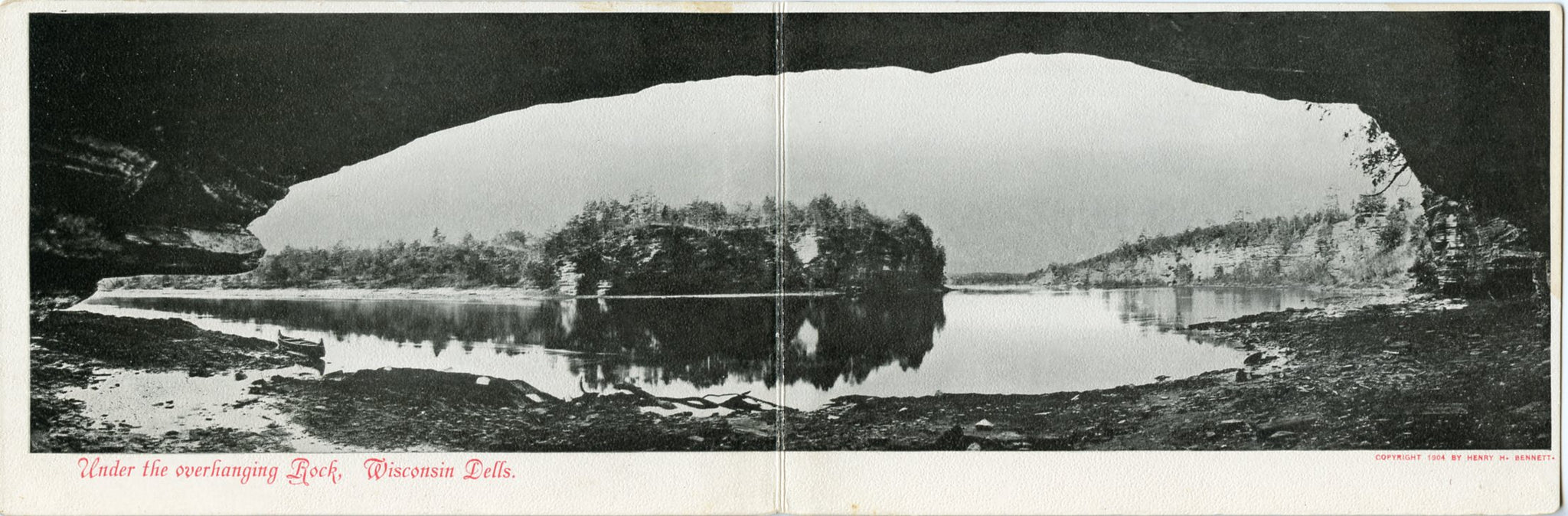 POSTCARD TITLE: Under the overhanging Rock, Wisconsin Dells