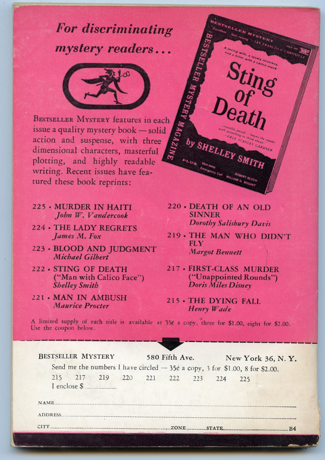 Bestseller Mystery Magazine, April, 1961, Vol. 3, No. 2.