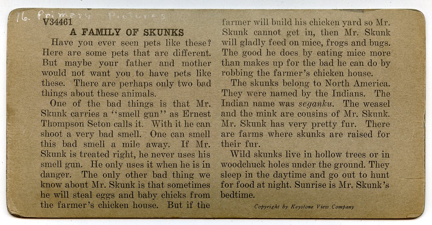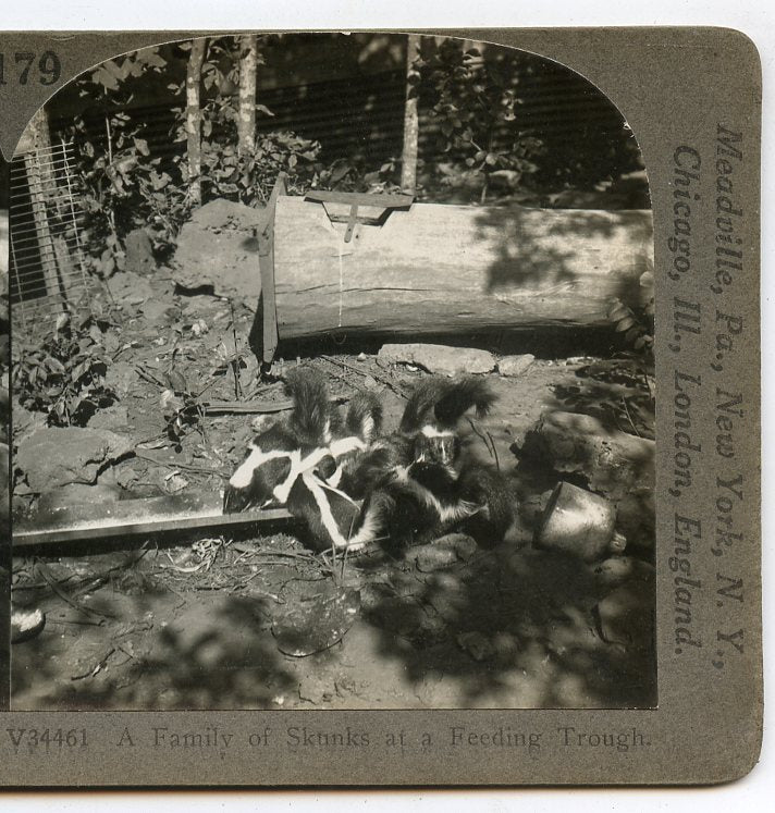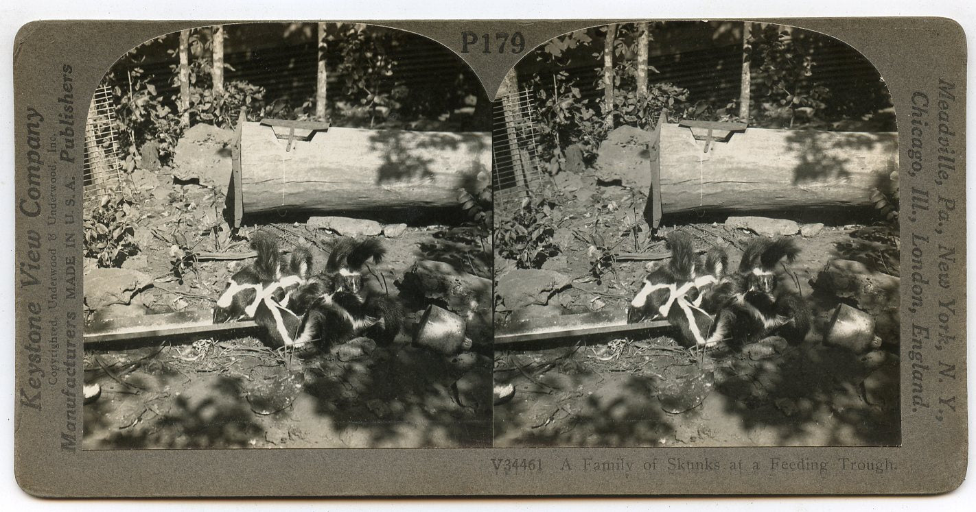 STEREOVIEW TITLE:   A Family of Skunks at a Feeding Trough