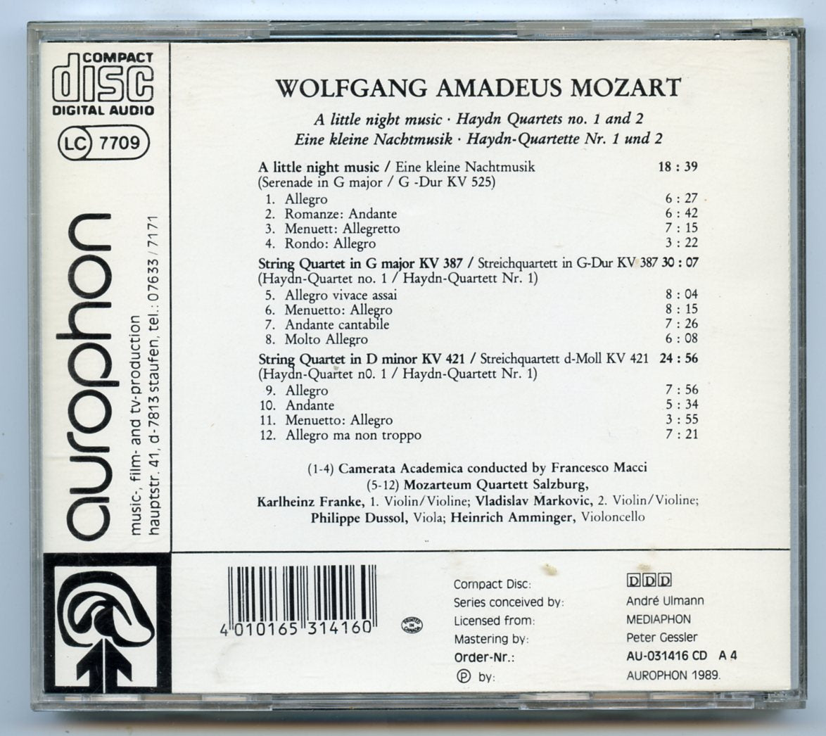 A Little Night Music, Haydn Quartets no. 1 and 2, by Wolfgang Amadeus Mozart