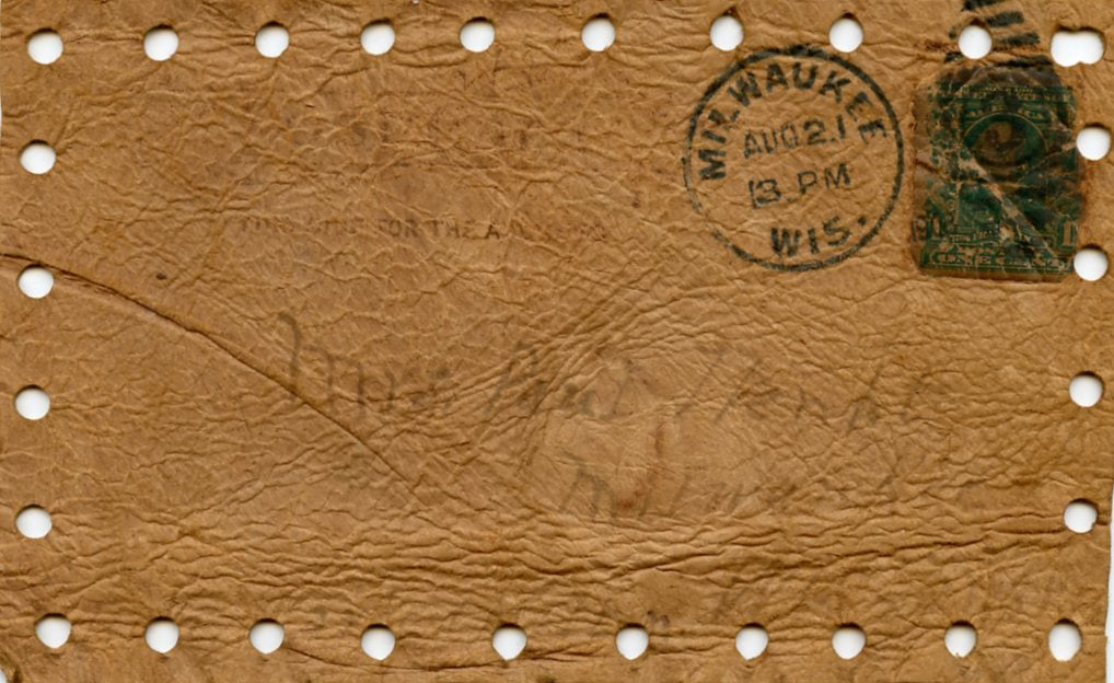 COMMENTS: Leather postcard.