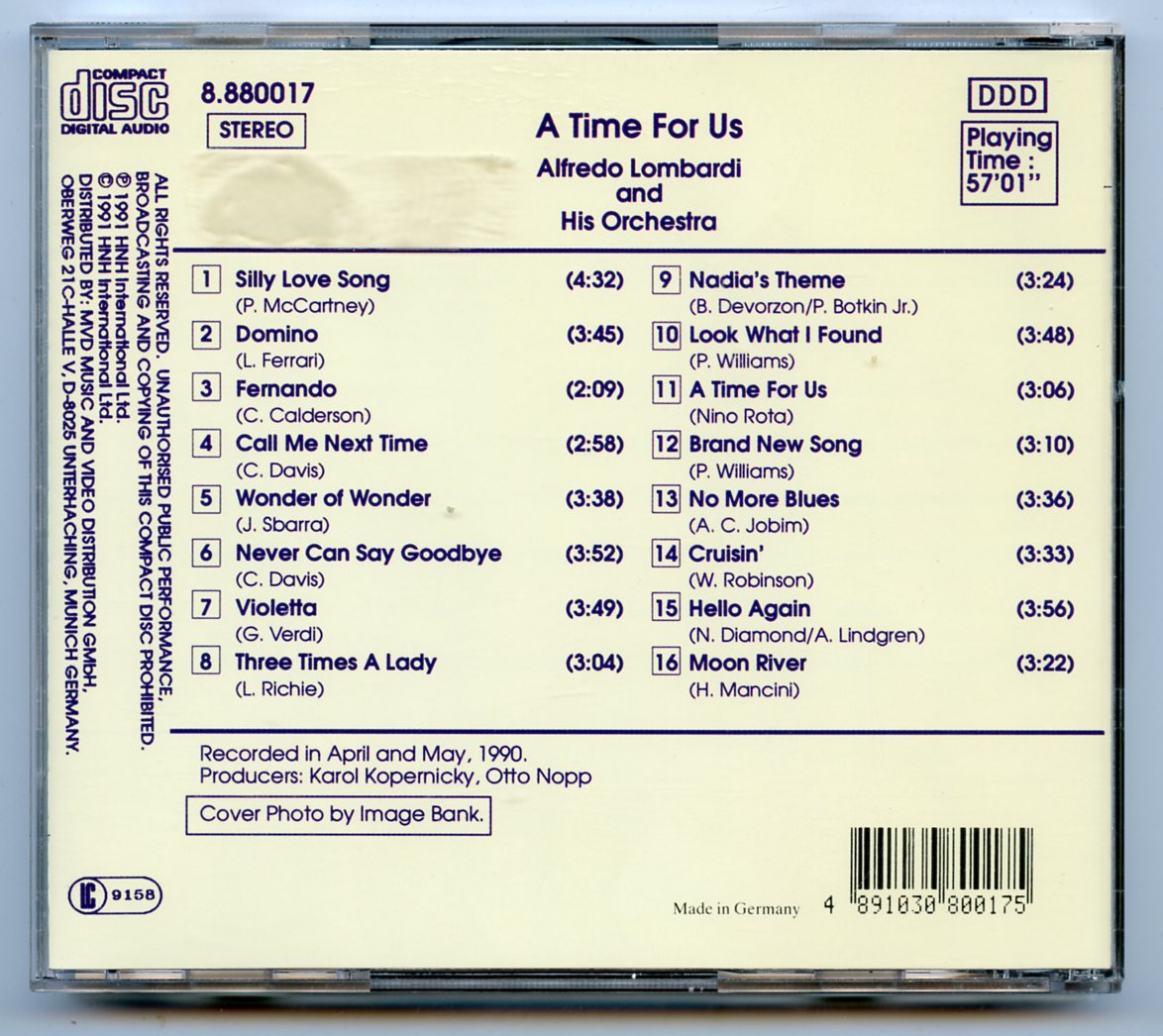 A Time for Us, 16 Easy-Listening Melodies, by Alfredo Lombardi and His Orchestra