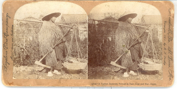 STEREOVIEW TITLE: A Typical Japanese Farmer in Rain Coat and Hat