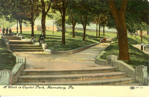 POSTCARD TITLE: A Walk in Capitol Park, Harrisburg, Pa.