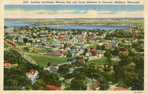 POSTCARD TITLE: Aerial View, Looking S. E., showing State Capitol, Lake Monona in Distance, Madison, Wisconsin