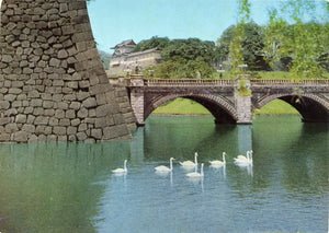 POSTCARD TITLE: Ancient Stone Walls, Flanking Nijubashi Bridge, Imperial Palace Grounds, Tokyo