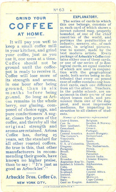 Arbuckle Bros. Coffee Co. Trade Card. No. 63 in the Countries of the World series. Central Africa.