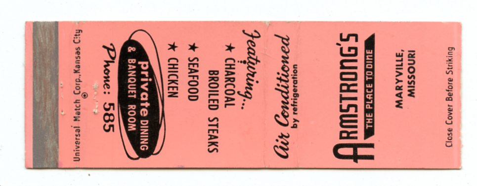 Armstrong's Restaurant, Maryville, MO Matchbook Cover