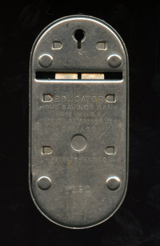 Rectangular shape. One slot for all coin denominations. Key IS NOT included. Very nice.