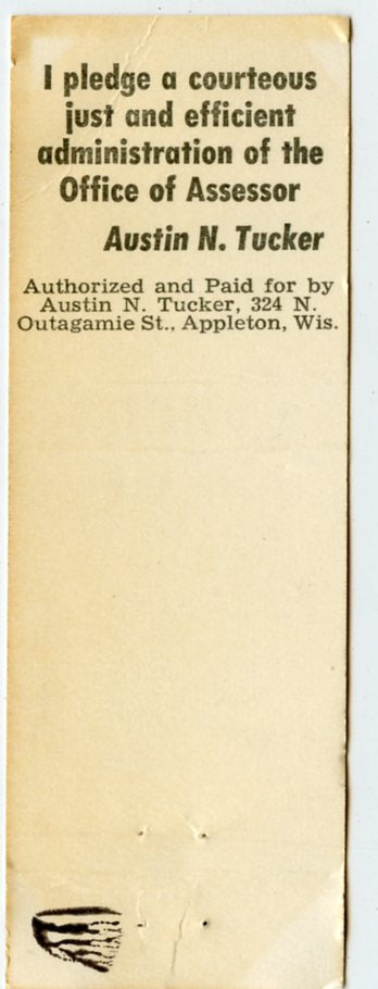 Austin N. Tucker for Assessor, Appleton, WI Matchbook Cover
