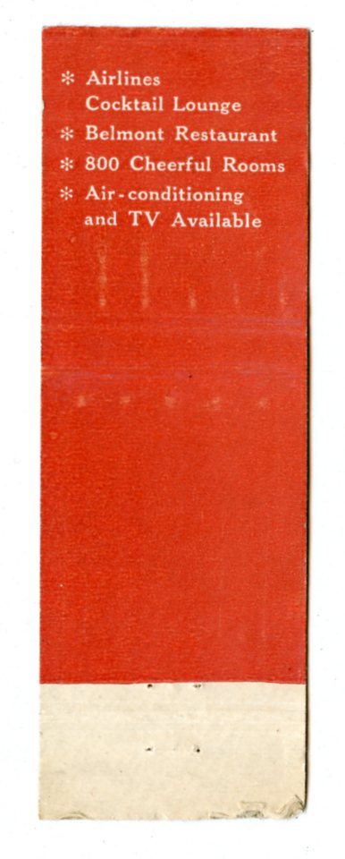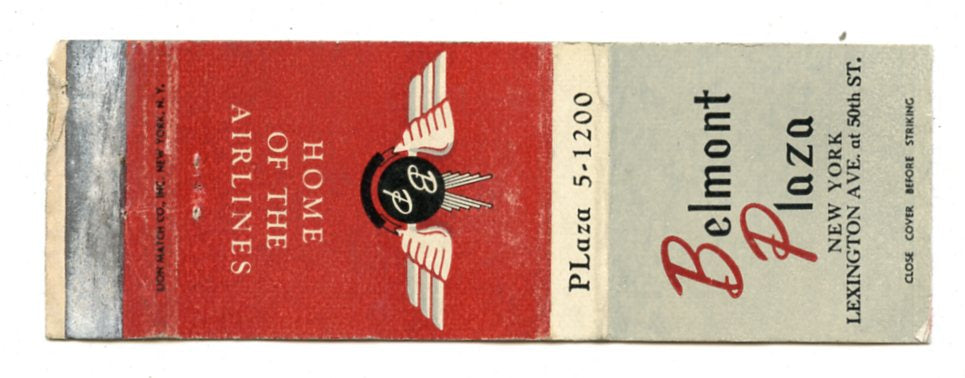 Belmont Plaza Hotel, New York, NY Matchbook Cover