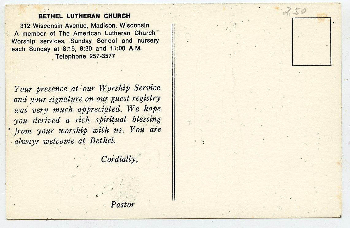 POSTCARD TITLE: Bethel Lutheran Church, Madison, Wisconsin
