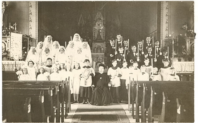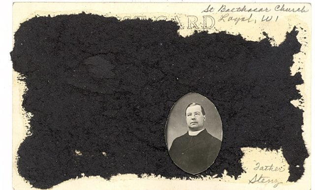 COMMENTS: Glued on to the back of the card is a photo of Father Stenz.