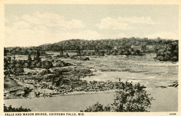 Falls and Wagon Bridge, Chippewa Falls, WI [Postcard]