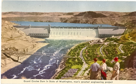 POSTCARD TITLE: Grand Coulee Dam in State of Washington, Man's Greatest Engineering Project