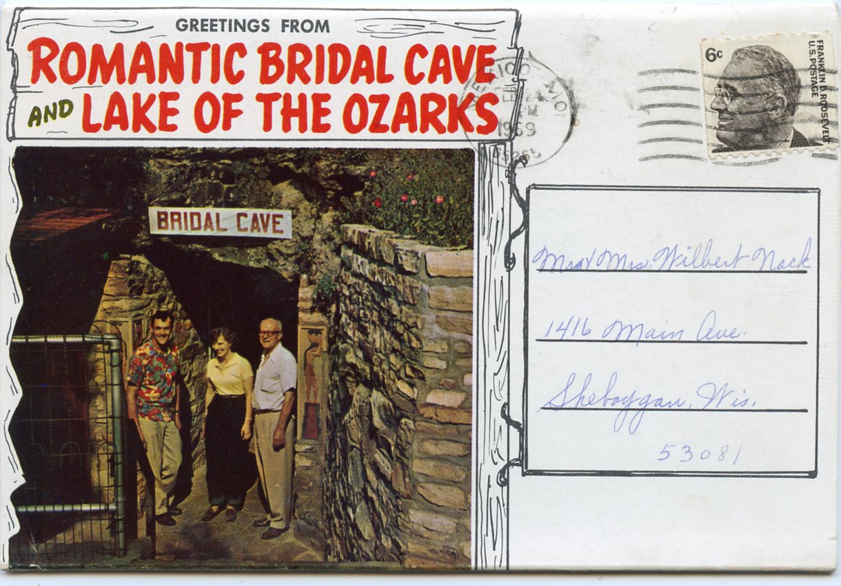 POSTCARD TITLE: Greetings from Romantic Bridal Cave and Lake of the Ozarks