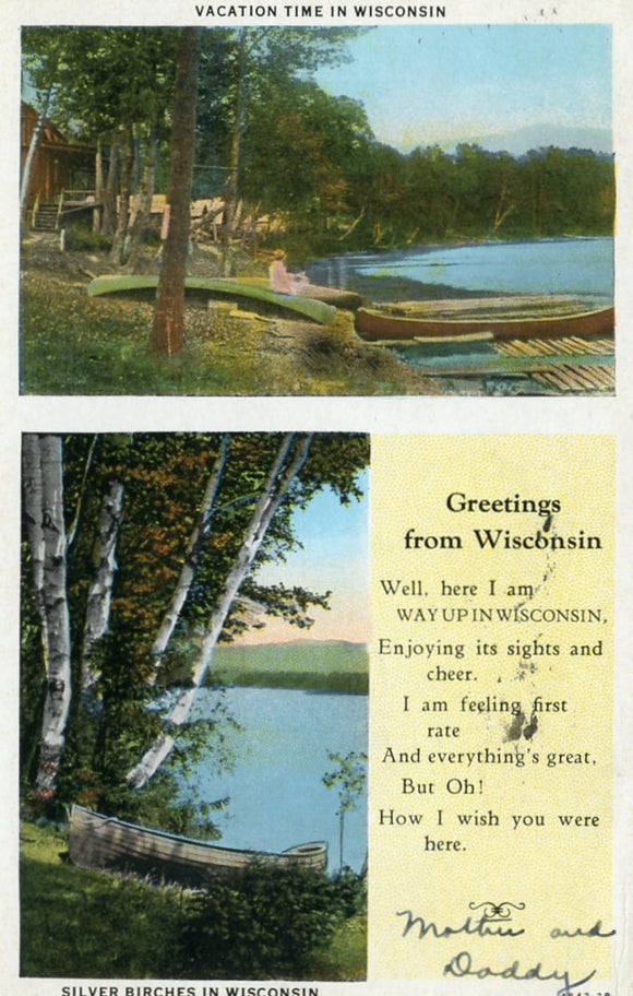 Greetings from Wisconsin, Vacation Time in Wisconsin, Silver Birches in Wisconsin [Postcard]