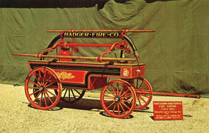 POSTCARD TITLE:   Hand-Drawn Hand Pumper, Built by Rumsey around 1860, Used in Chicago fire in 1871, From Centerville, Wisconsin, Hall of Flame, Scottsdale, Arizona