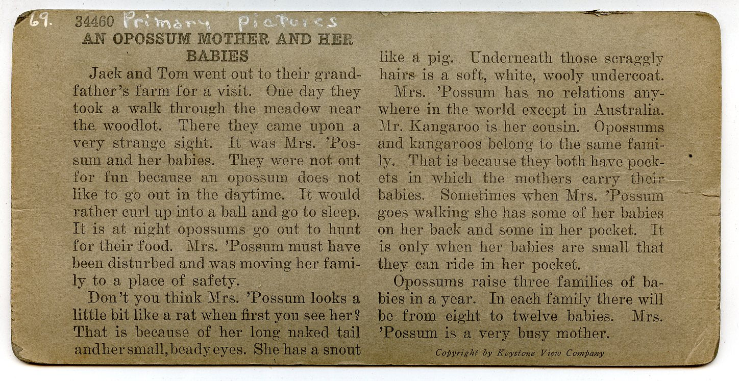 STEREOVIEW TITLE: How the Opossum Mother Carries Her Babies
