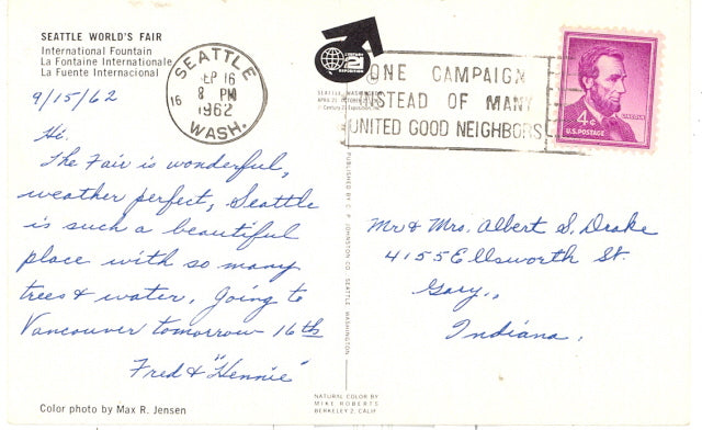 POSTCARD TITLE: International Fountain, Seattle World's Fair