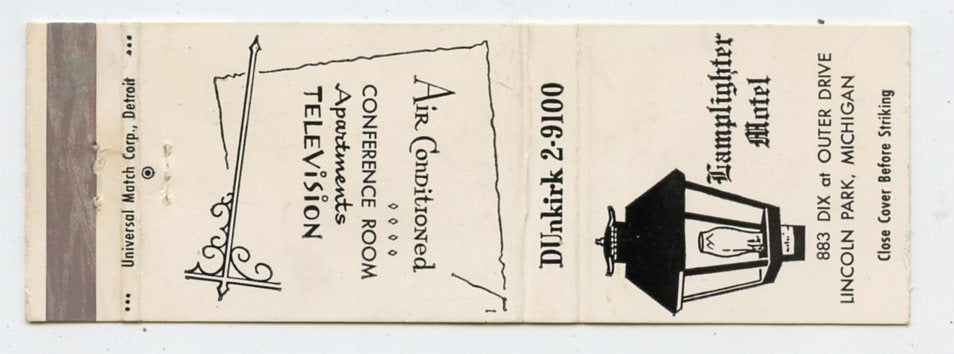 Lamplighter Motel, Lincoln Park, MI [Matchbook Cover]