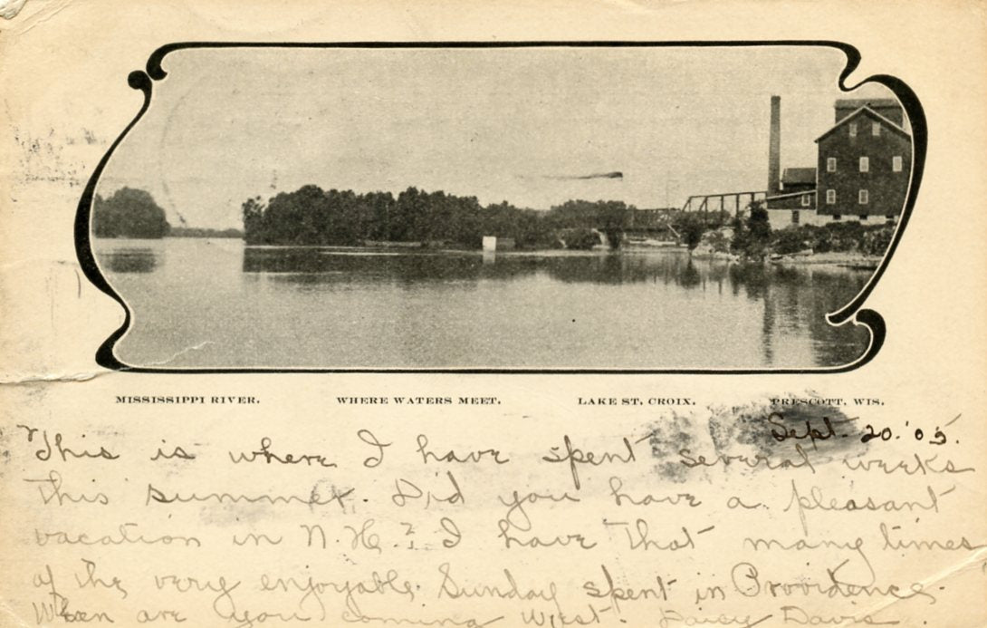 POSTCARD TITLE: Mississippi River, Where Waters Meet, Lake St. Croix, Prescott, Wis.
